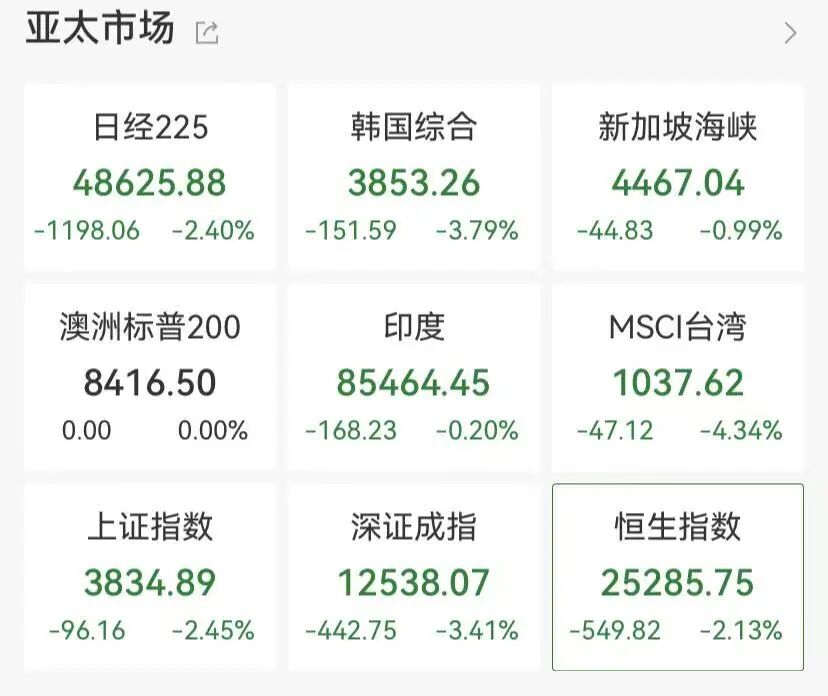 日经225指数收跌2.4%报48625.88点,本周下跌3.48%。权重股方面,AI概念股领跌,爱德万测试大跌12.1%,软银集团下跌10.9%,三菱重工下跌6.43%。消息面上,据央视新闻援引共同社报道,日本政府最快于今日在内阁会议上敲定经济对策,规模拟定为约21.3万亿日元,其中包括2025年补充预算等财政支出等。