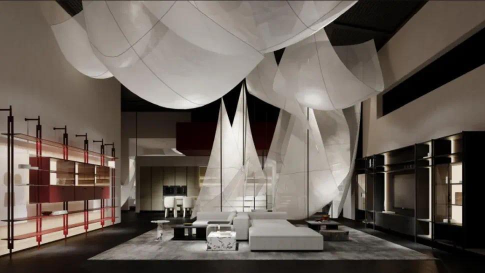 「国采馆」则以“软装 生活美学”为方向,涵盖全屋家具、软装灯光、家居用品三大品类,承接内装完成后的氛围营造与生活场景构建。