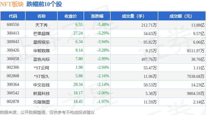 NFT板块11月6日跌055%天下秀领跌主力资金净流出