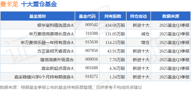 11月10日曼卡龙涨524%银华富利精选混合A基金重仓