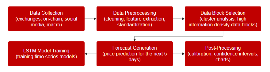 输出层:模型输出未来五天的比特币价格预测值,通常以价格序列或价格变化率的形式表示。