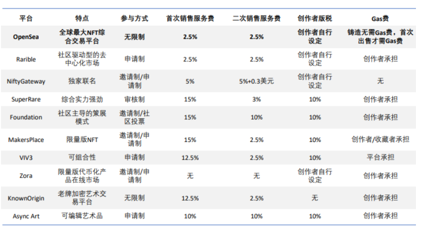 2020年,Dapper Labs 发行以游戏及其他数字资产为目标市场构建的Layer1公链 Flow提升了NFT生态基建完整性。同年,基于Flow开发的NFT数字收藏品NBATOP Shot上线月,基于Flow建立的NFT交易平台VIV3正式上线,艺术家、游戏工作室等可使用VIV3采用Flow技术底层铸造NFT代币,对粉丝、收藏家、游戏玩家和数字资产投资者进行资产发售。OpenSea、SuperRare等头部交易平台的NFT作品发行.交易渠道得以多向拓宽。